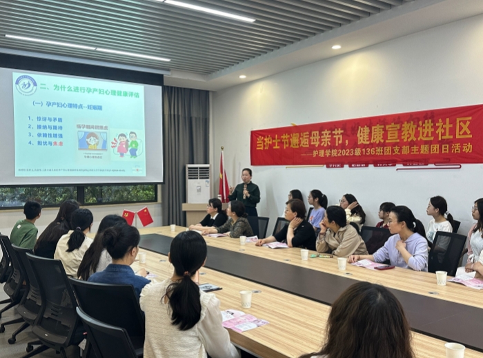 此次活动分为知识讲座和互动交流两个环节。母婴与儿童护理学教研室党支部书记周利华带来有关孕产妇心理健康知识讲座,围绕心理健康的概念、评估方式、孕产妇常见心理健康问题及干预方法三方面进行了深入浅出的讲解。教师党员同孕妈、宝妈热情交流,分享护理技巧,引导孕妈妈们做好孕期优生检查,养成合理饮食、适量运动、心理平衡的良好习惯。