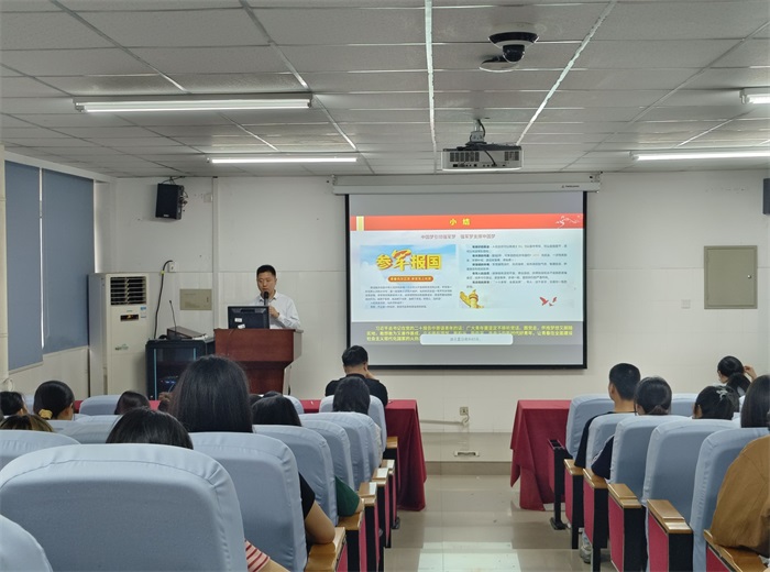 开展征兵政策宣讲会,贯彻落实习近平强军思想,激发青年学生积极投身国防事业的雄心壮志。学院党委书记薛磊作政策宣讲,院党委副书记王磊主持会议。