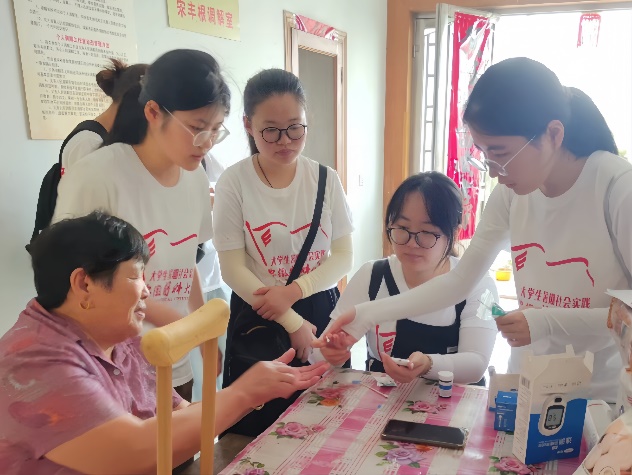 在指导老师的带领与帮助下,实践团在万山卫生院开展了测血糖、测血压、传知识、做调查等多元化健康服务送温暖活动。在公益活动中,志愿者们初步掌握了万山镇居⺠的基本健康情况。这不仅提升了他们自身的专业技能,同时也践行了服务基层、奉献社会的理想信念。